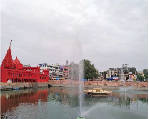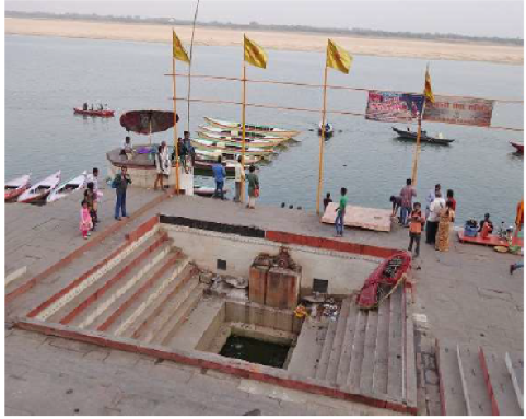 The Kedar Ghat houses a small rectangular water tank adjacent to river Ganga....
